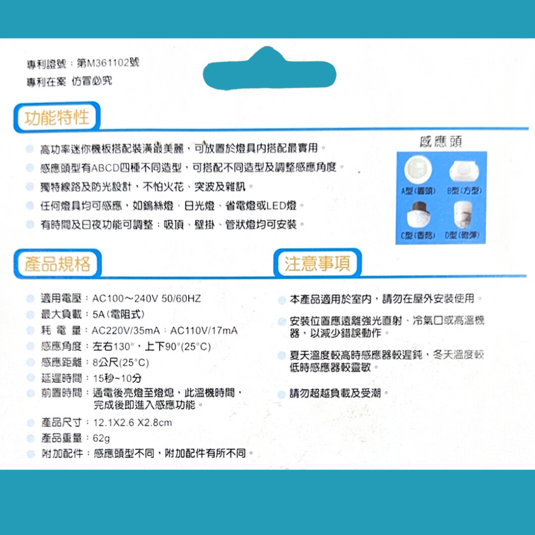 🔸 感應頭型有ABCD四種不同造型,可搭配不同造型及調整感應角度