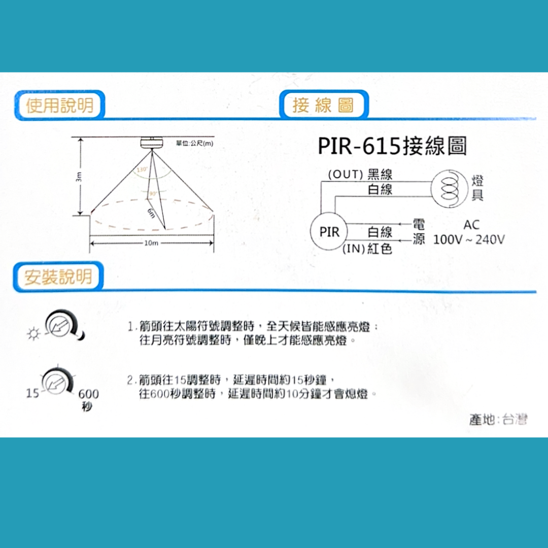 🔸 任何燈具均可感應,如鎢絲燈、日光燈、省電燈及LED燈