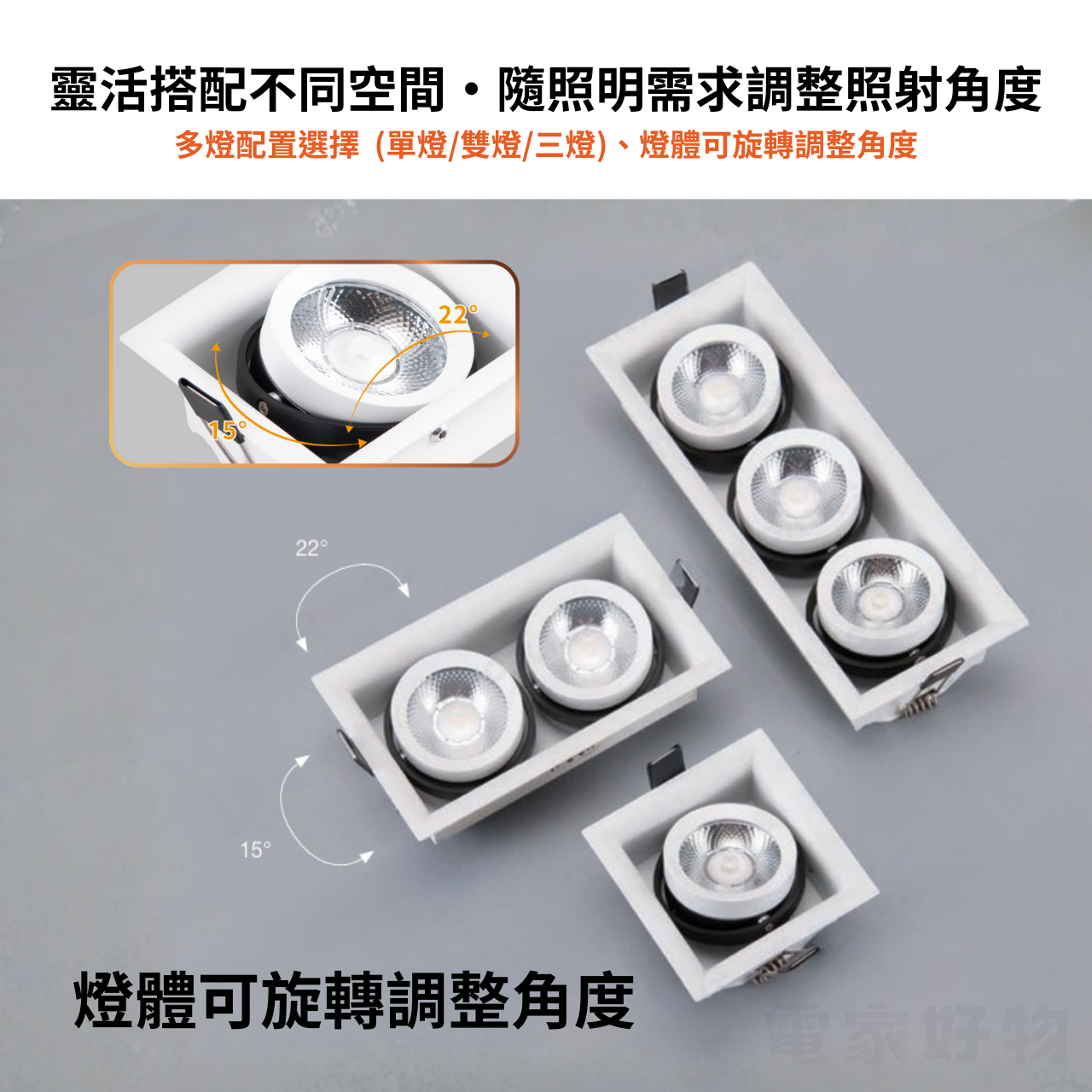 🔥 隔日到貨🔥 可擺角方型崁燈 方形崁燈 薄型 可調角度 7W單燈 14W雙燈 21W三燈 崁燈 LED崁燈 調角崁燈