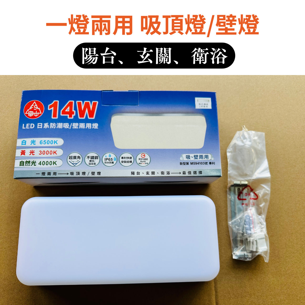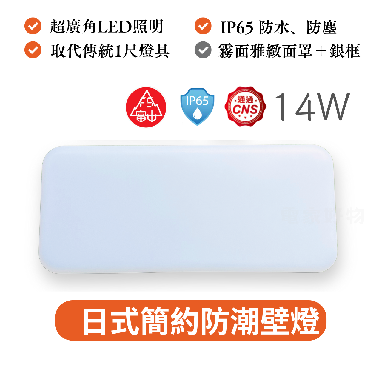 ✅ 台灣出貨,現貨免等待!✅ 快速出貨,不需預購!✅ 如需開立統一發票, 請事先聊聊告知, 我們將隨貨附上 ~ROHS:R5106014W LED防潮壁燈/吸頂燈尺寸:長260mmx高112mmx深46mm光通量:1400流明不鏽鋼底座 IP65防水防塵通過CNS認證