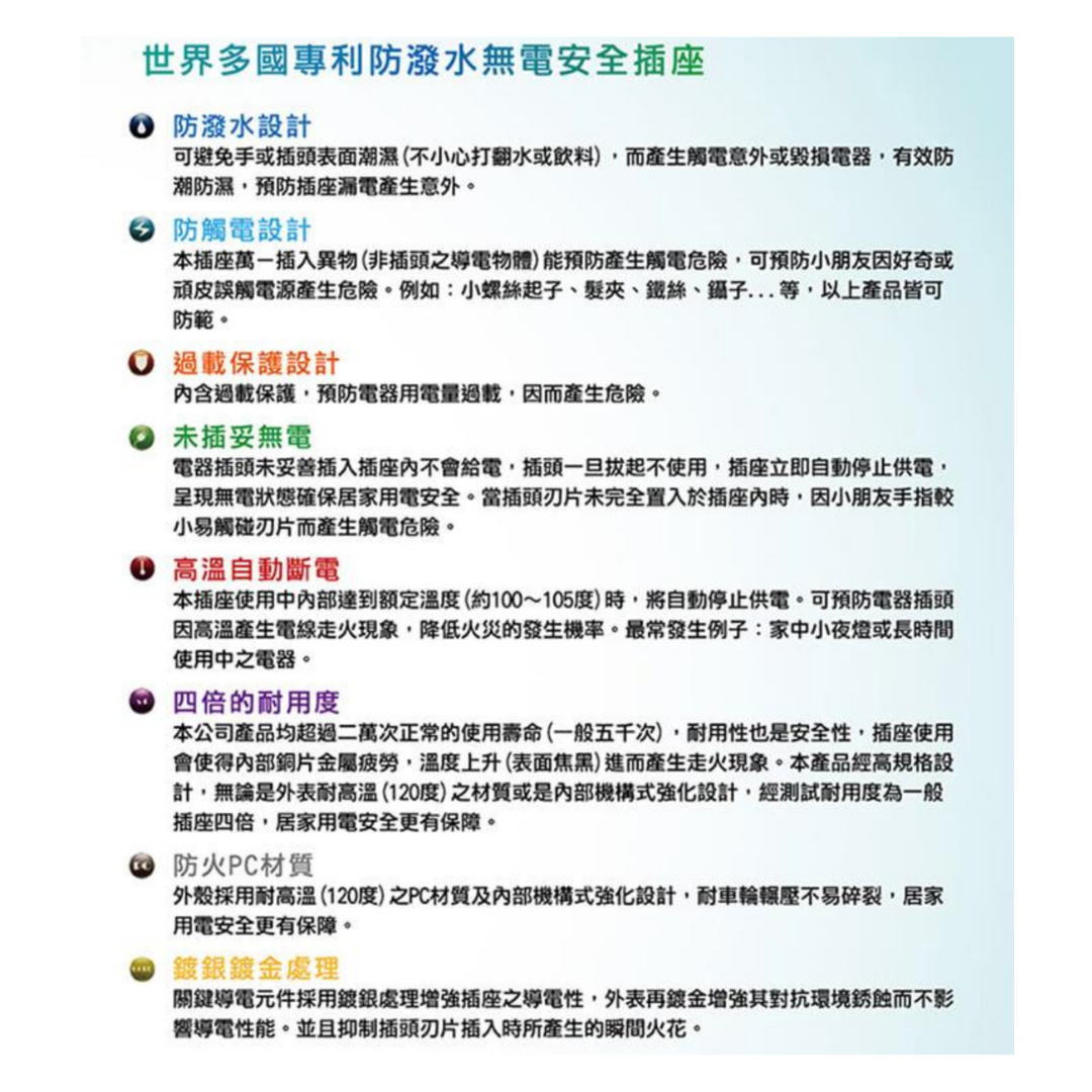 本產品之安全功能為預防而非必備之功能,請依正確之方式使用,以免誤導錯誤的用電方式與觀念,造成不必要的困擾與危險,謝謝!