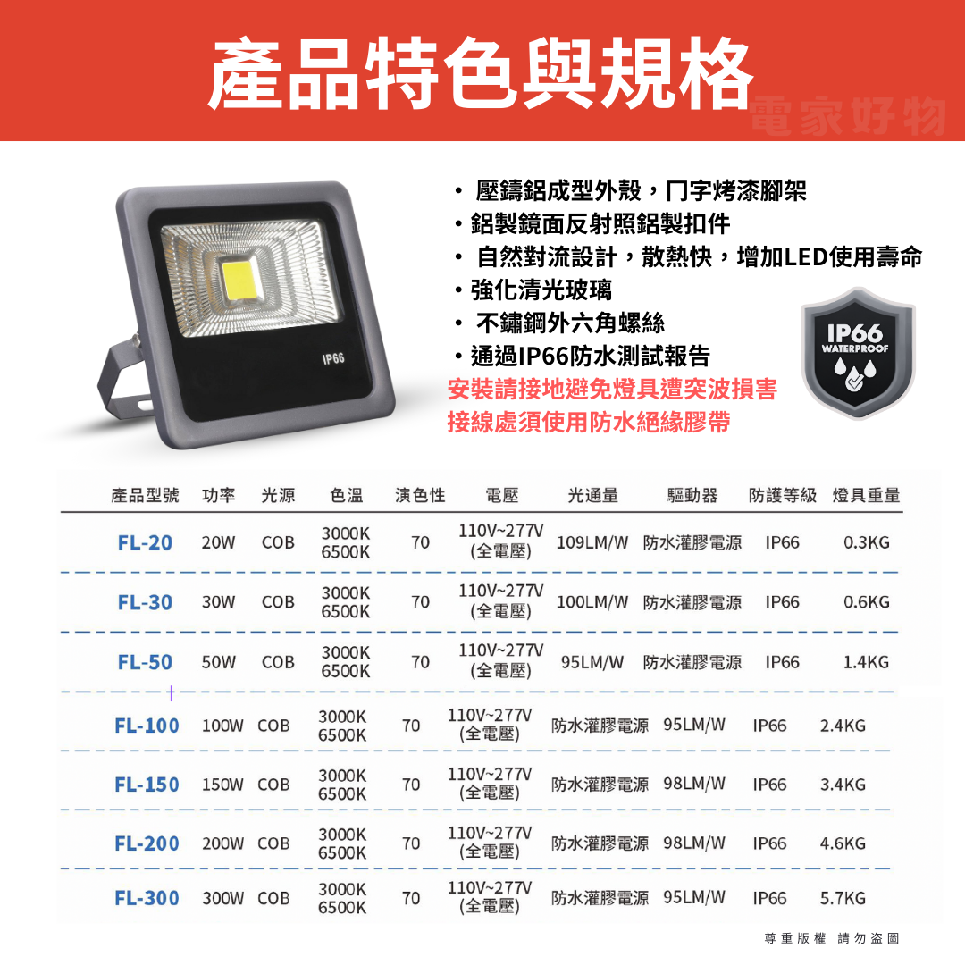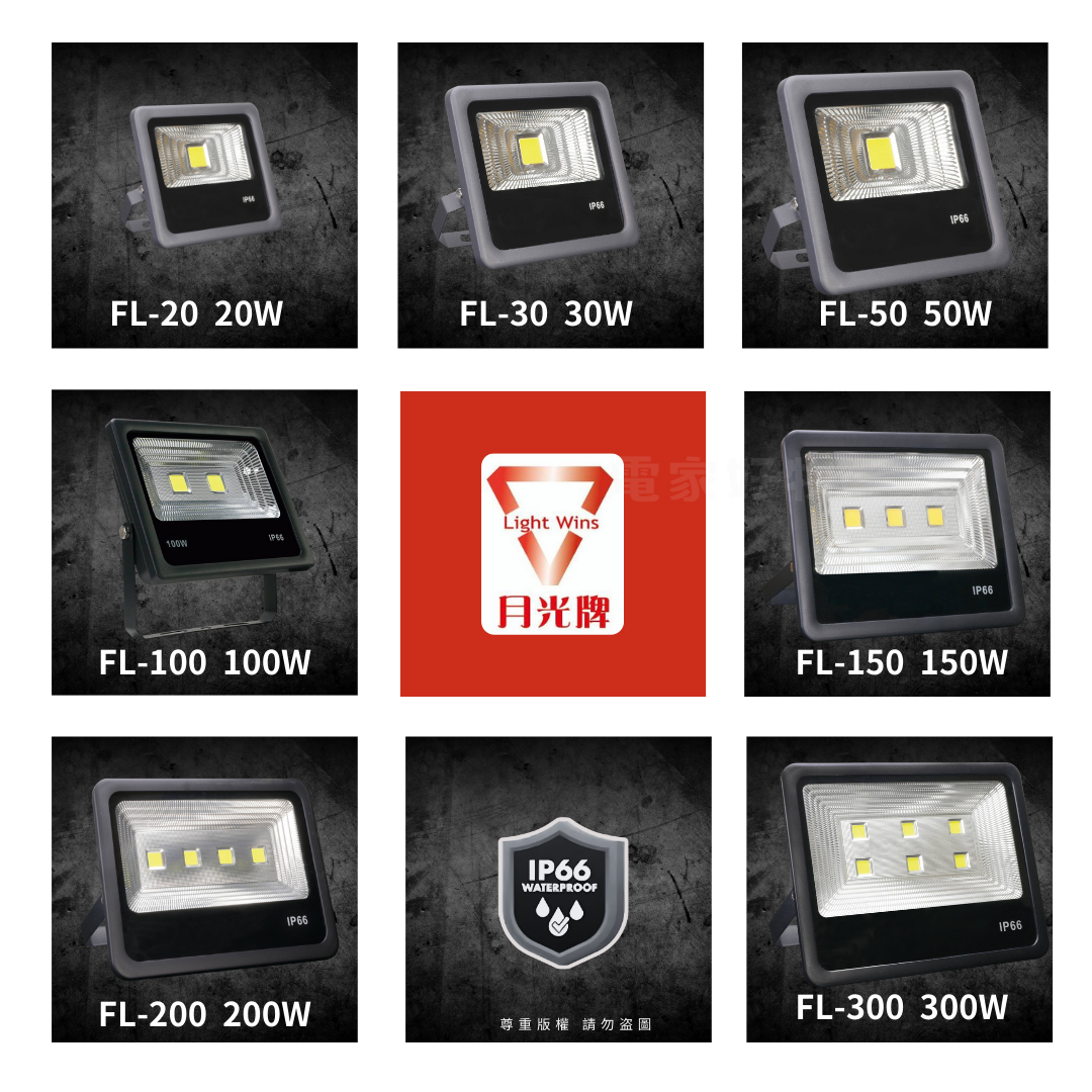 300W:推薦用於工廠、倉庫或大型廣場,光線覆蓋範圍廣,亮度極高。