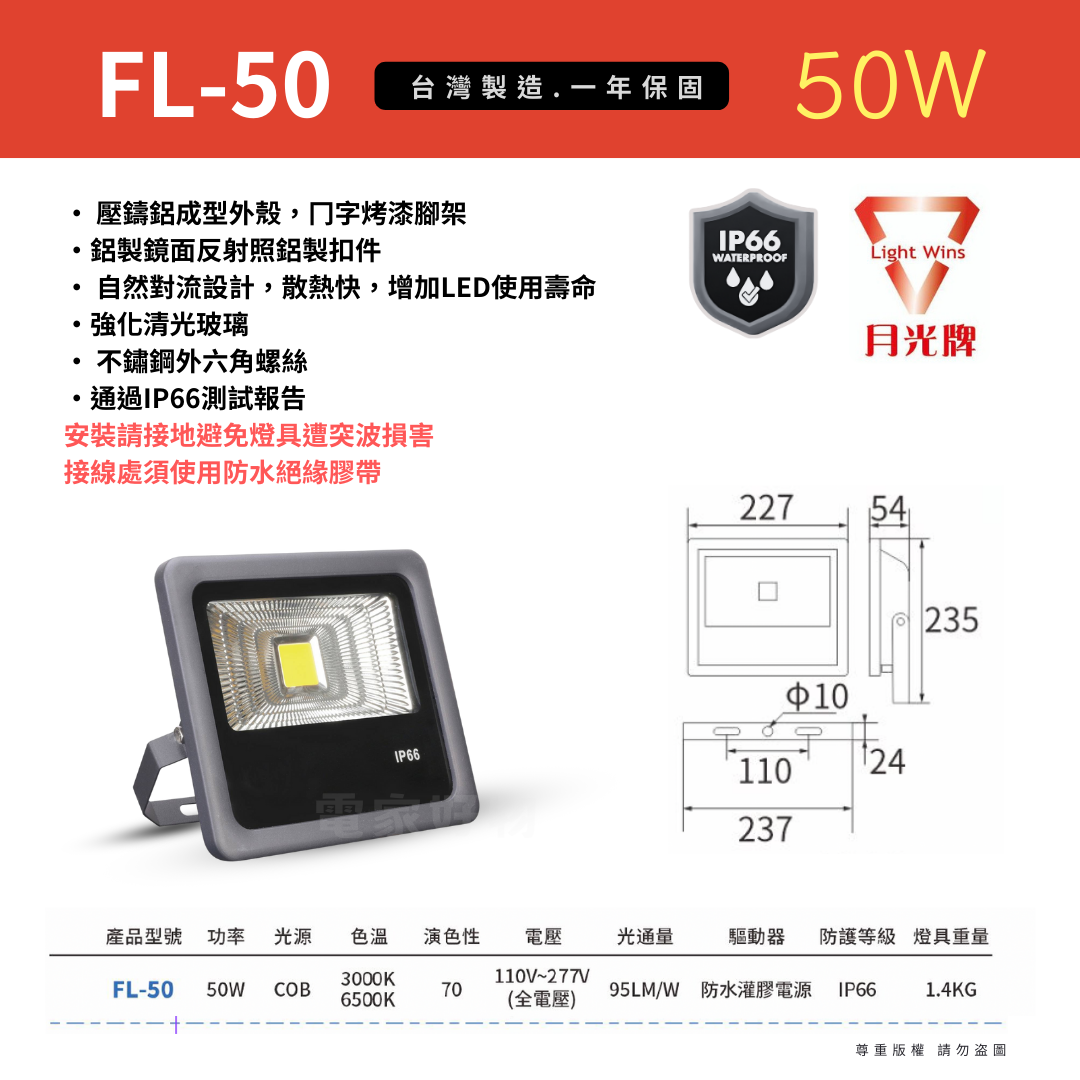 50W:一樓店面使用這個瓦數,亮度足夠。