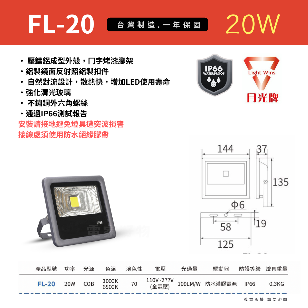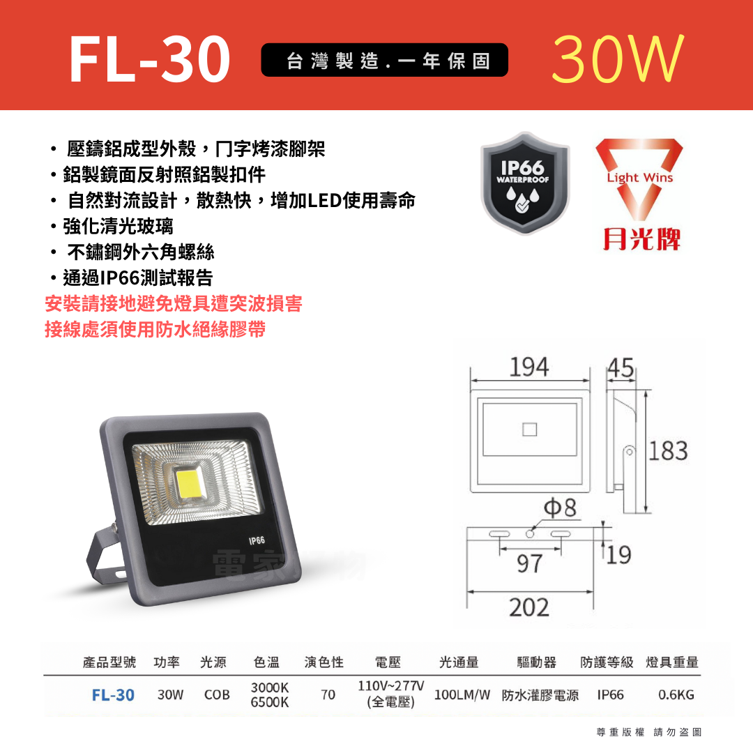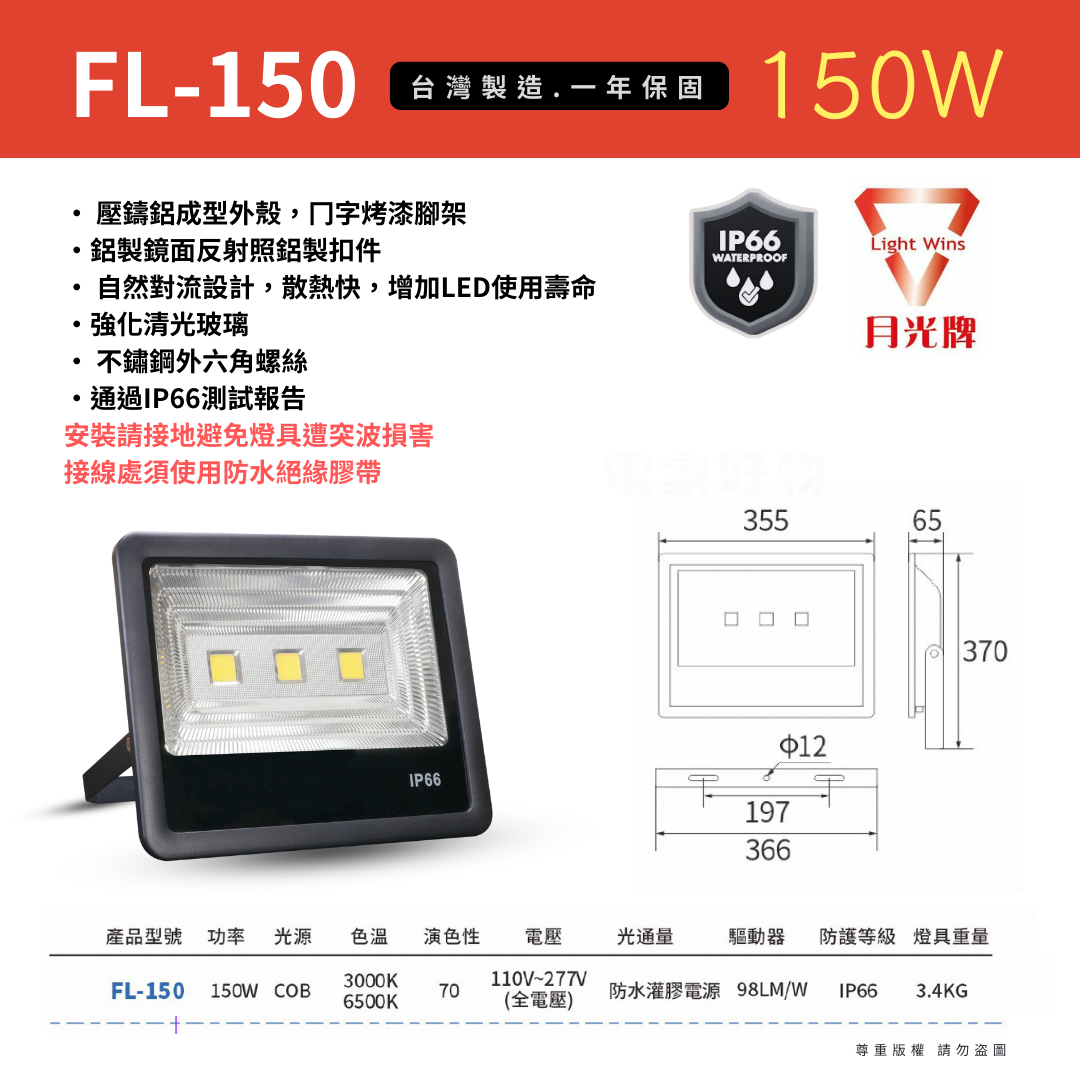 安裝請接地避免燈具遭突波損害