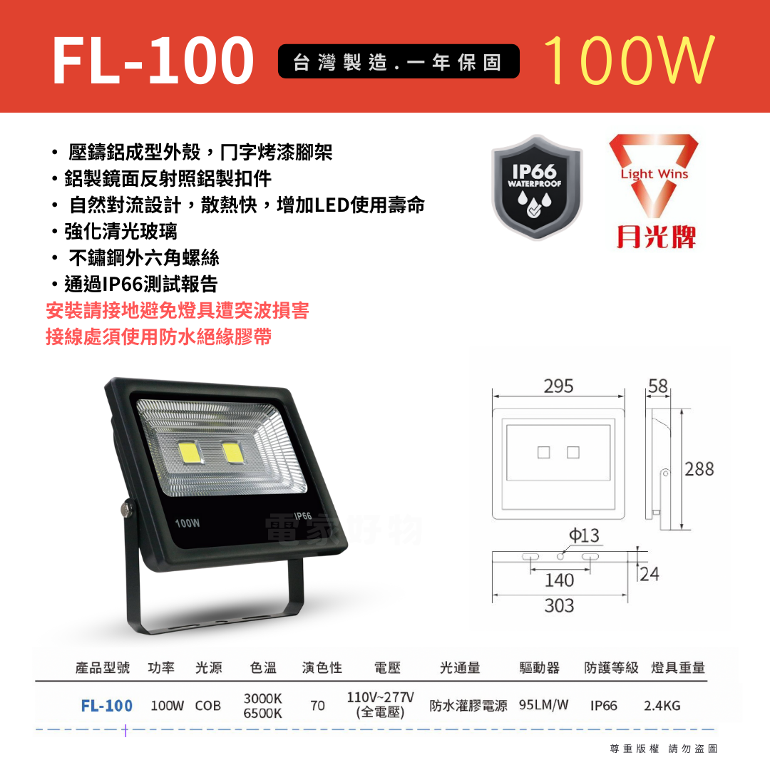 100W:適合大樓管理大廳門口,提升環境亮度。