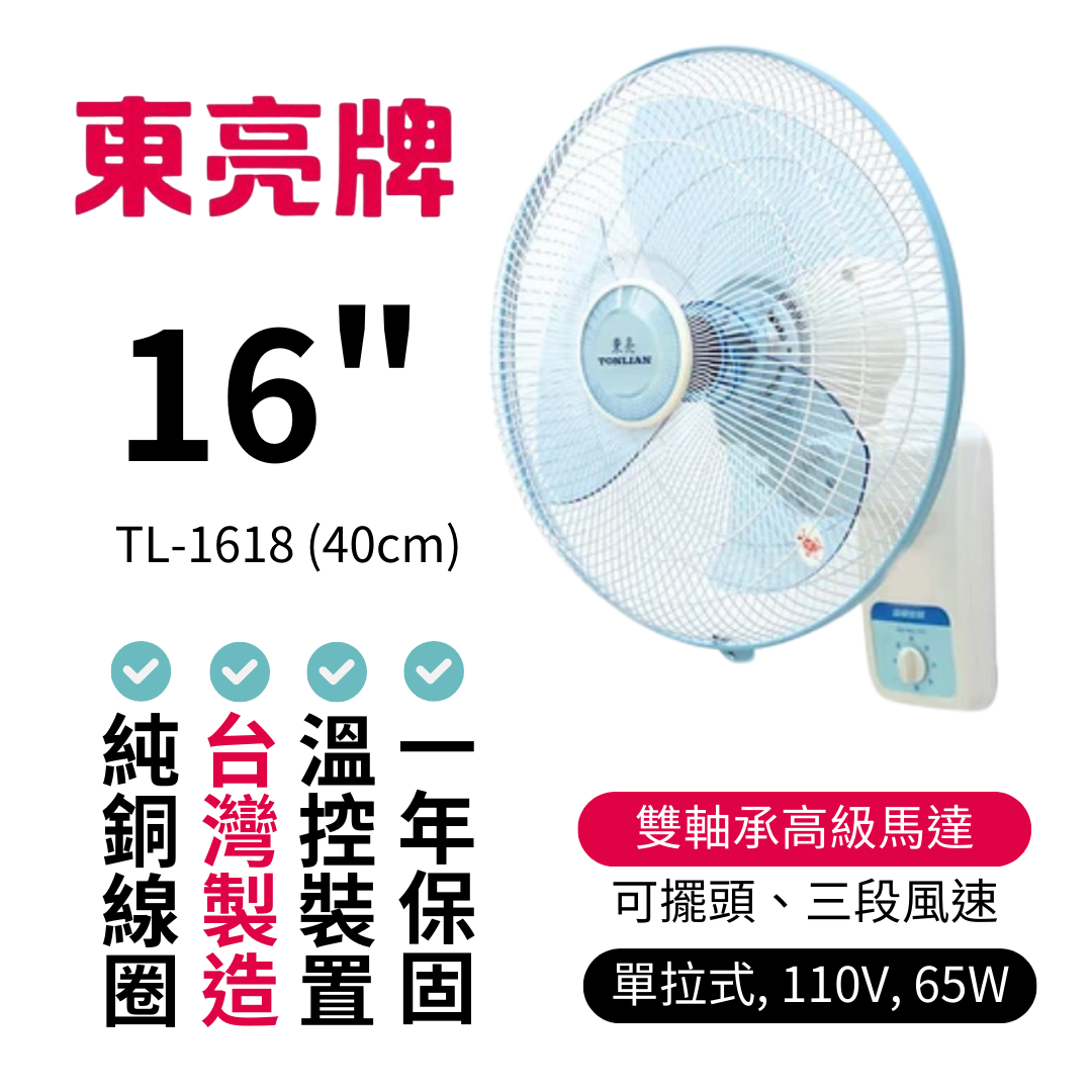 🔥 台灣製造【東亮牌】TL-1618, 壁扇 16" / 40cm 壁掛扇 風扇 循環扇 通風扇 電風扇 涼風扇