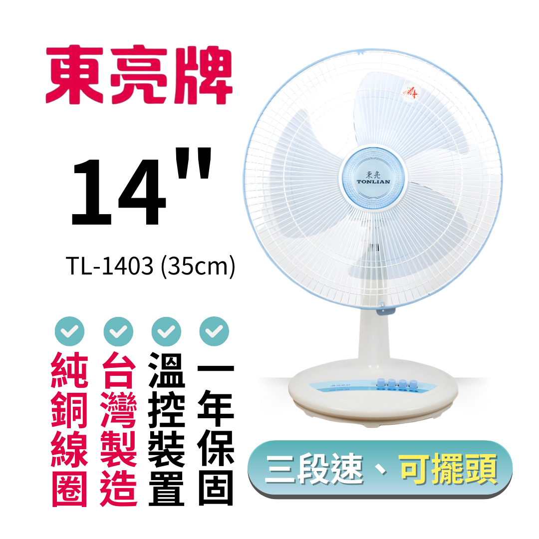 🔥 台灣製造 🔥 現貨即出 東亮 14吋 TL-1403 三段風 桌扇 涼風扇 台製純銅線圈 高性能馬達