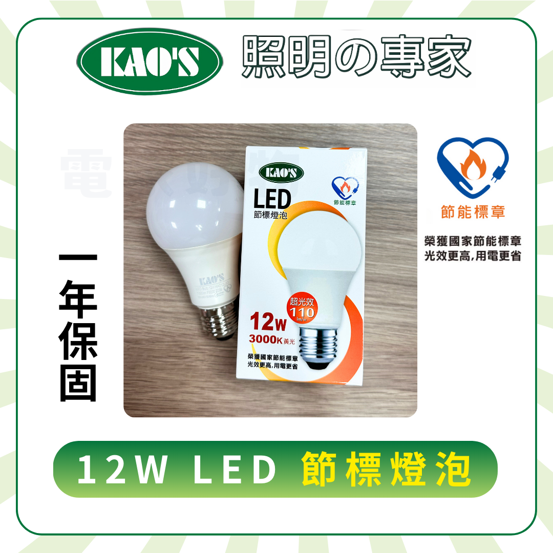 🔥 現貨即出🔥【節能標章】KAO's 高氏 LED 節標燈泡 E27 12W 3000K 4000K 6500