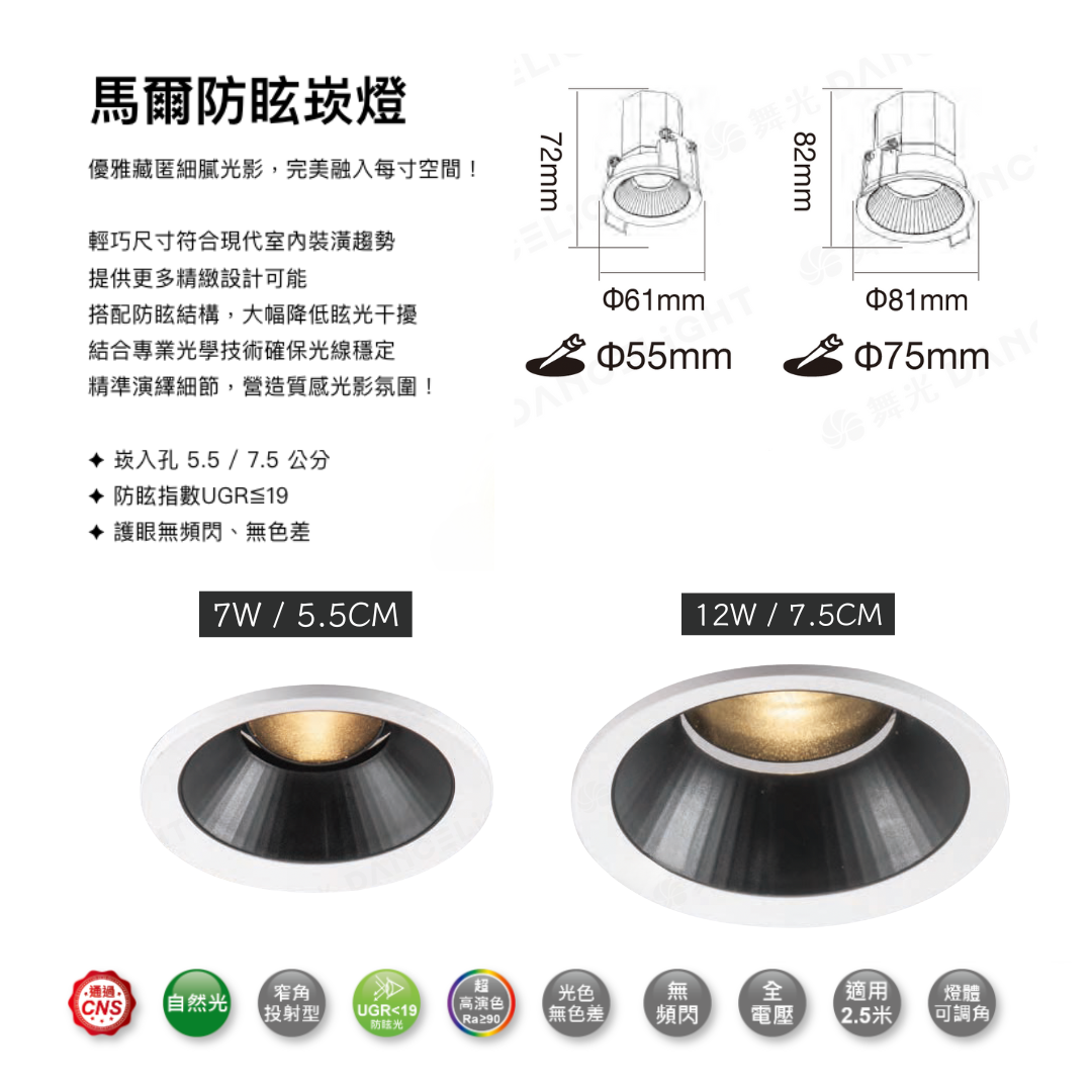 🔥 全台免運【舞光】馬爾防眩崁燈 7W 12W 崁入孔 5.5cm 7.5cm Ra90高演色 窄角投射 燈體可調角