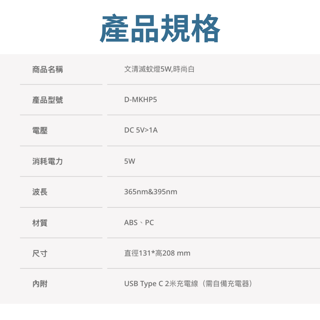 🔸 型號:文清滅蚊燈 (時尚白) D-MKHP5