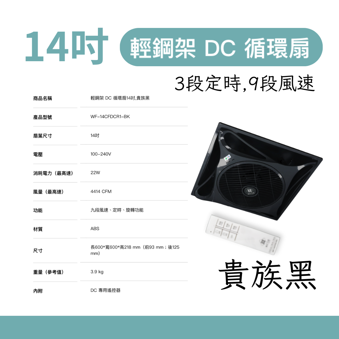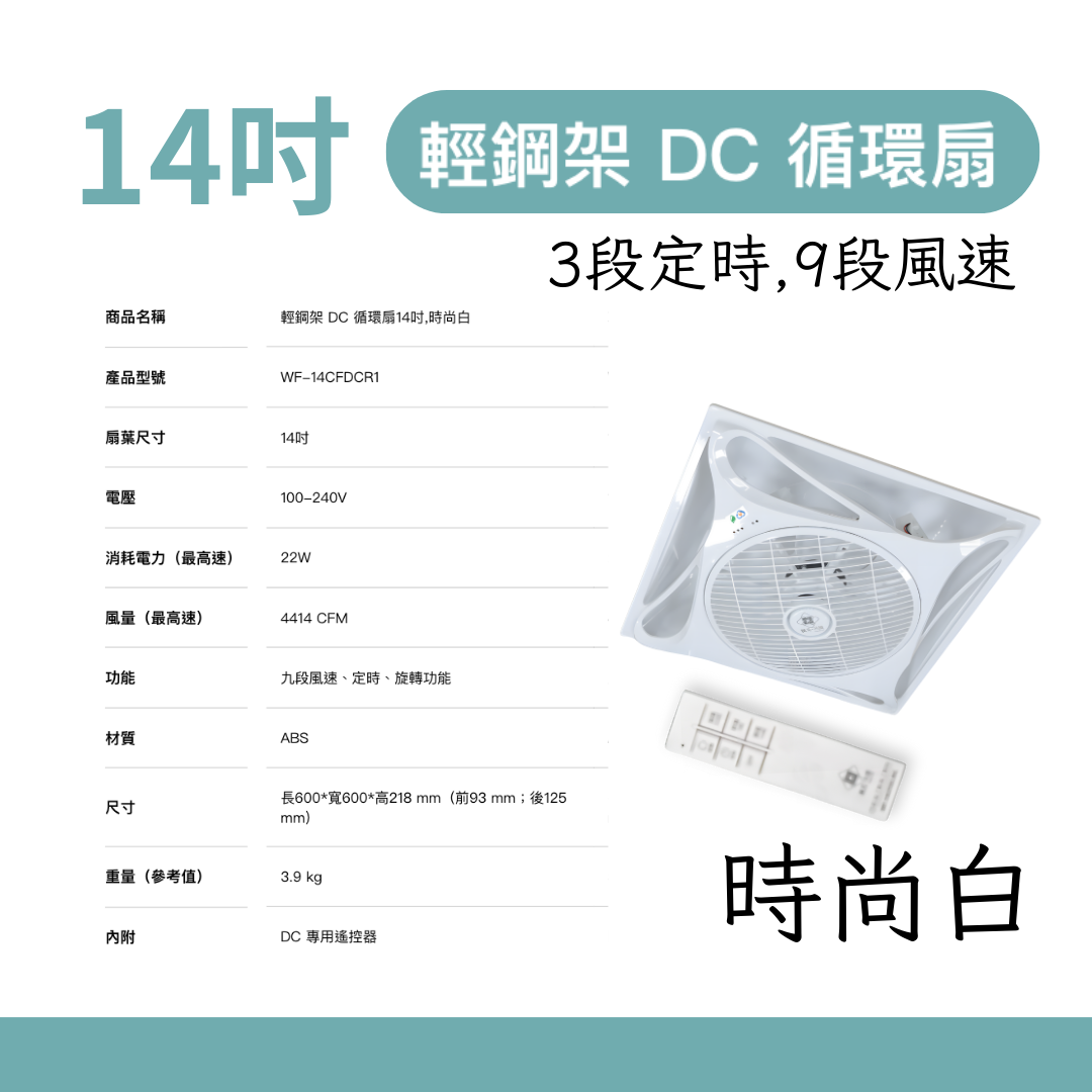 * 產品名稱:14 吋 DC 輕鋼架循環扇