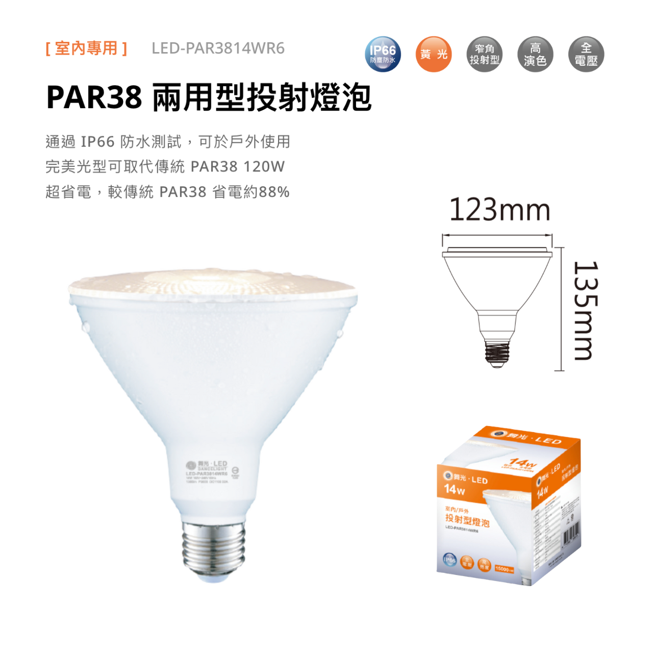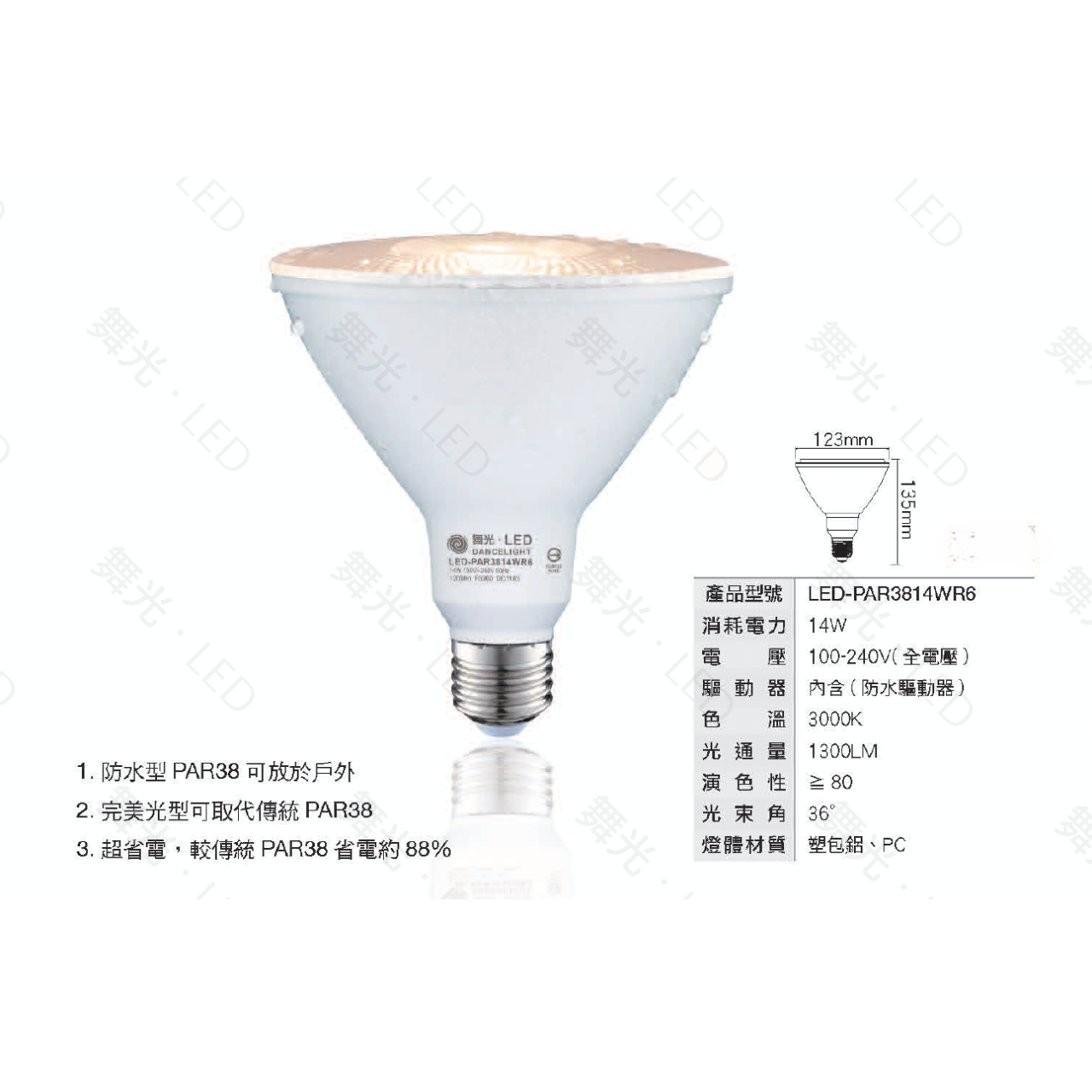🔥 現貨免運 舞光 14W 防水投射燈泡 LED戶外室內 黃光 E27 全電壓 PAR38 防水防塵