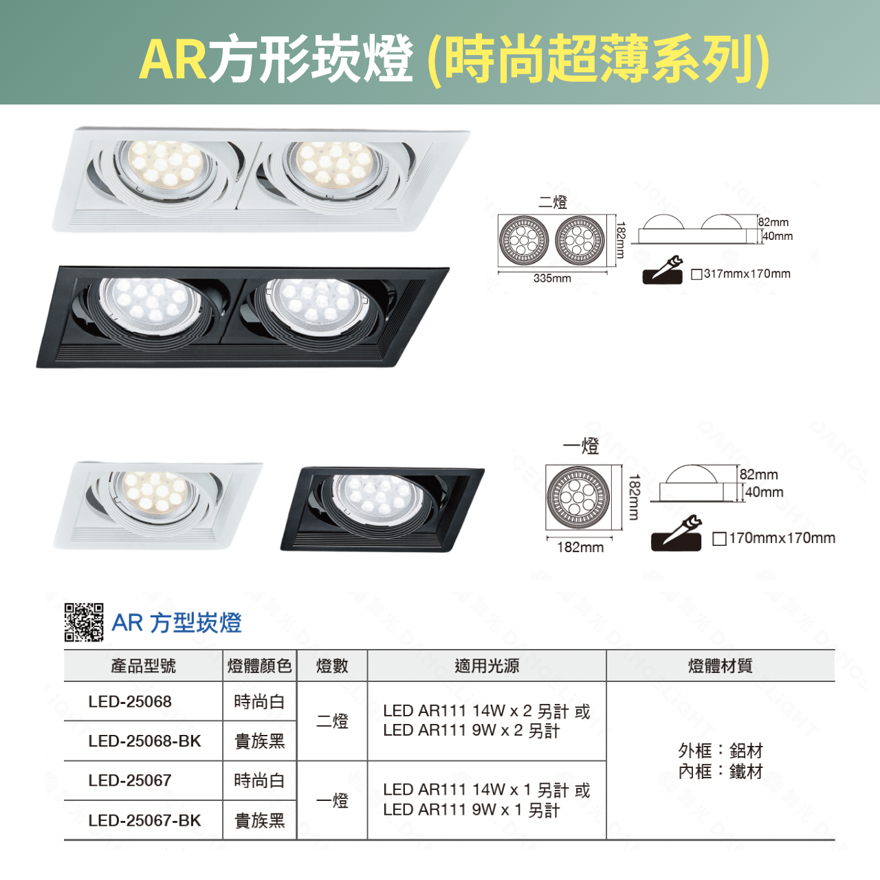 🔥 現貨免運 舞光 AR超薄崁燈 雙燈 單燈 黑框 白框 盒燈 AR111 LED崁燈 四角崁燈燈框 AR111光源另購
