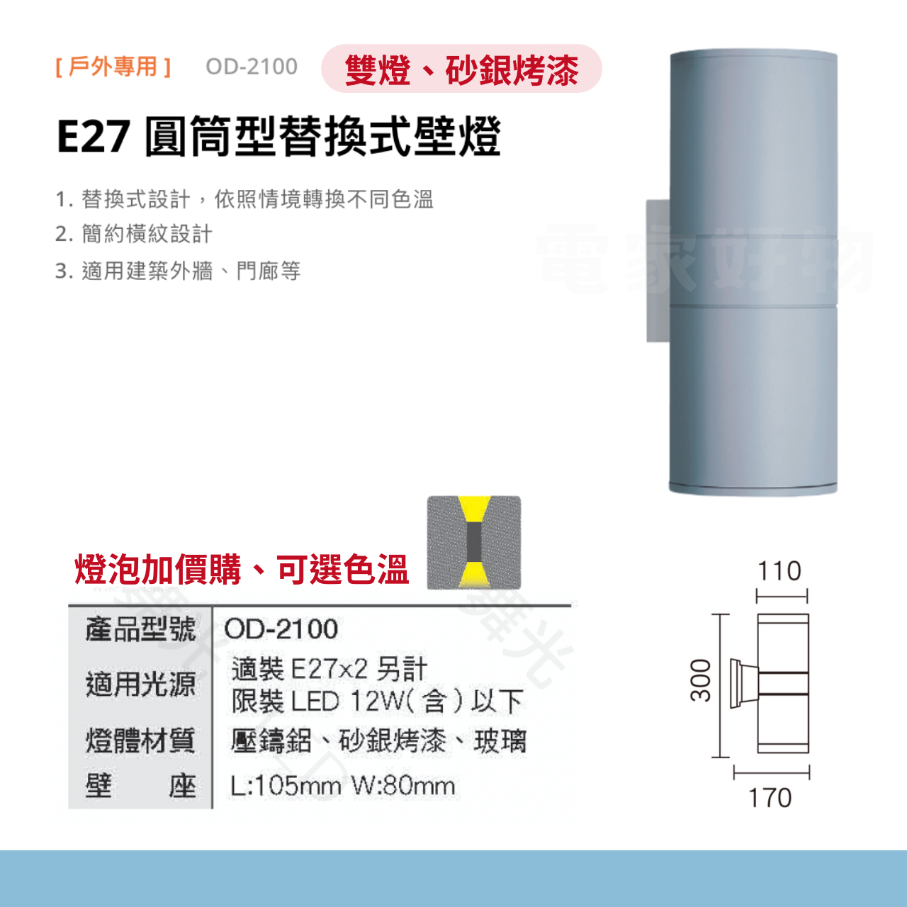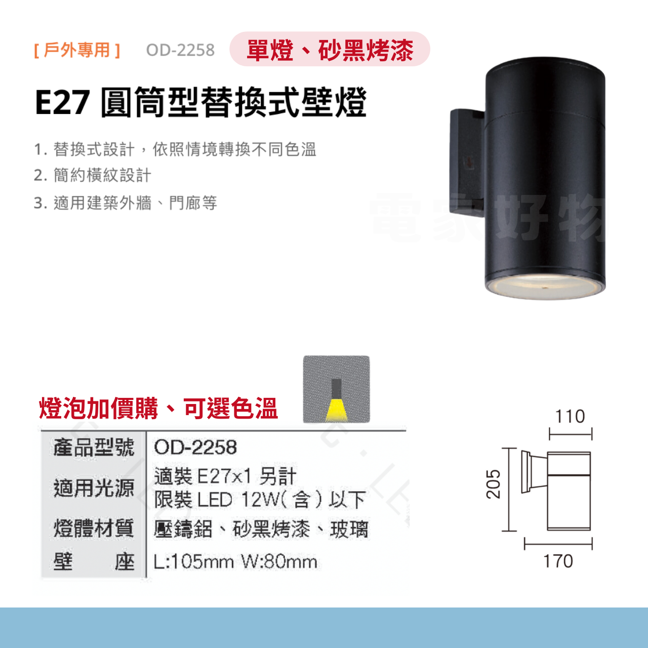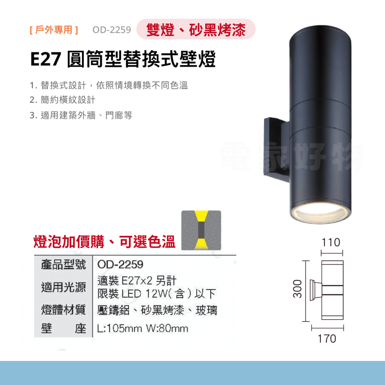 🔥 現貨免運 舞光 E27替換型壁燈 圍牆燈 庭院燈 門口燈 花園燈 造景燈 走道燈 投射燈 OD-2259 單燈 雙燈