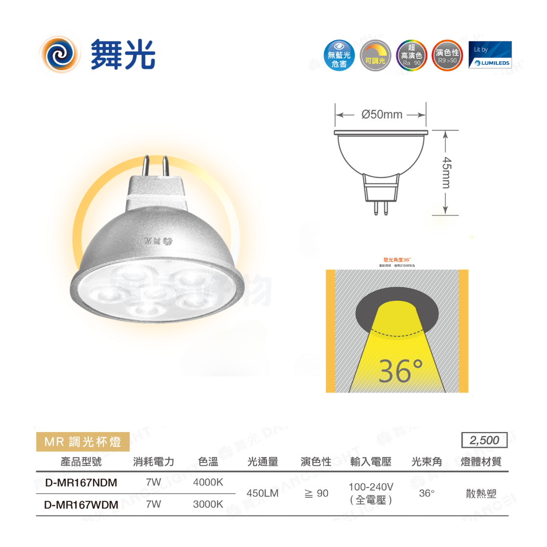 🔥 全台免運 🔥【舞光】 MR16 調光杯燈 7W 黃光 自然光 可調光 MR16杯燈 MR16燈泡 燈泡 杯燈