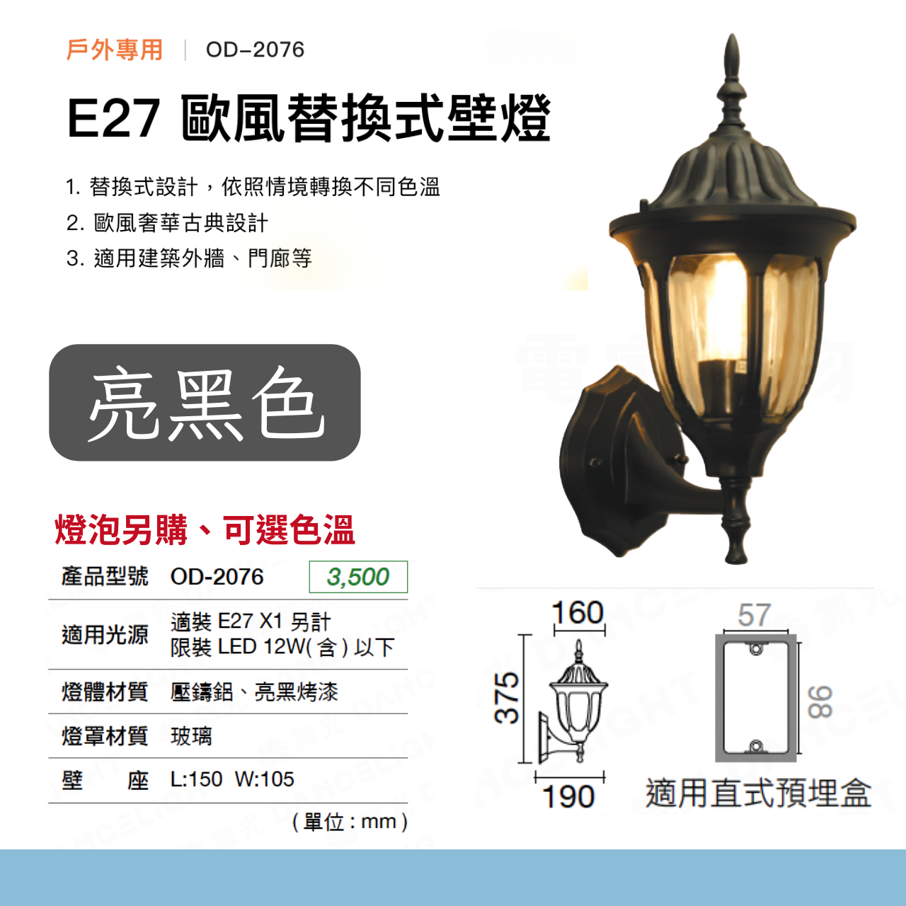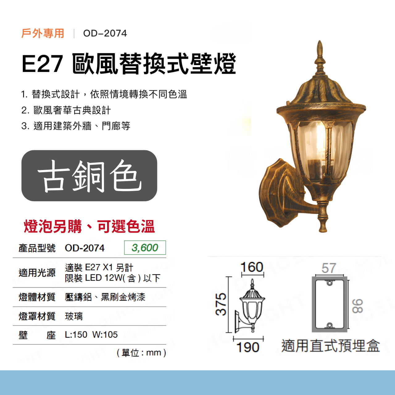 🔥 快速出貨【舞光】OD-2076 OD-2074 戶外壁燈 復古壁燈 室外壁燈 戶外燈 歐式 歐風 美式復古壁燈燈具