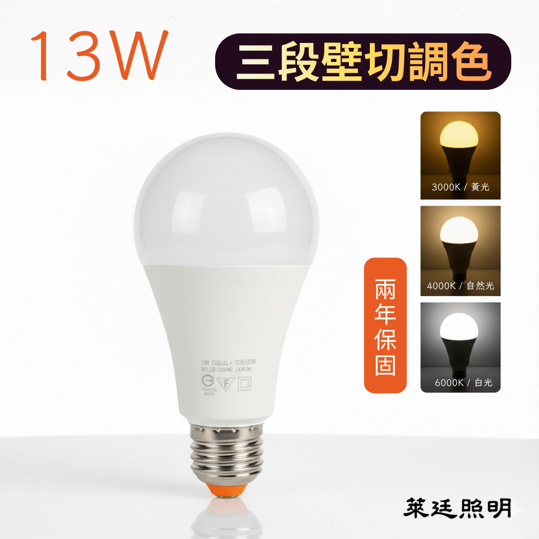 🔥 快速出貨🔥 萊廷照明 13W 三段壁切調色 燈泡 LED燈泡 節能 13W 三色球泡 開關調色 三色燈泡 壁切