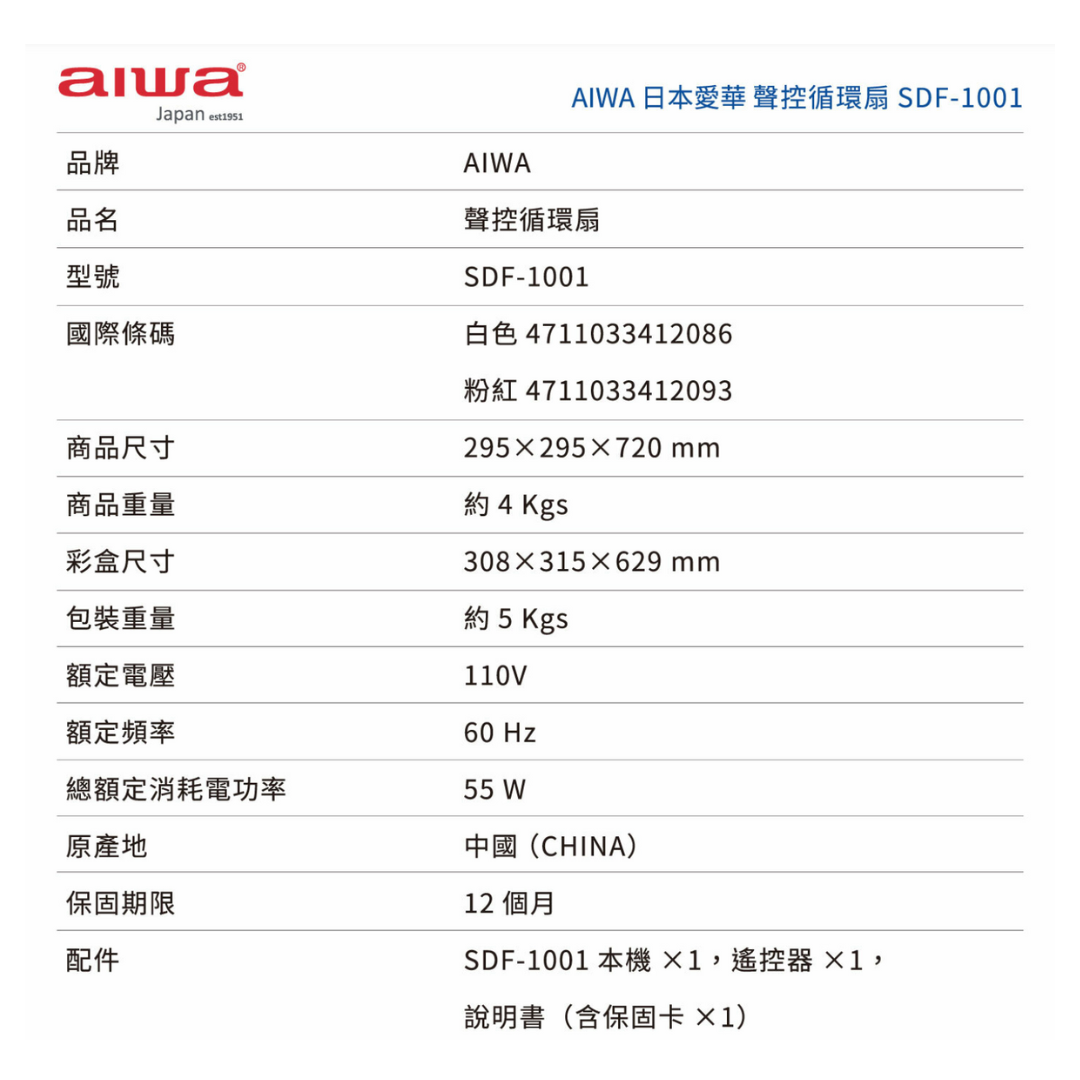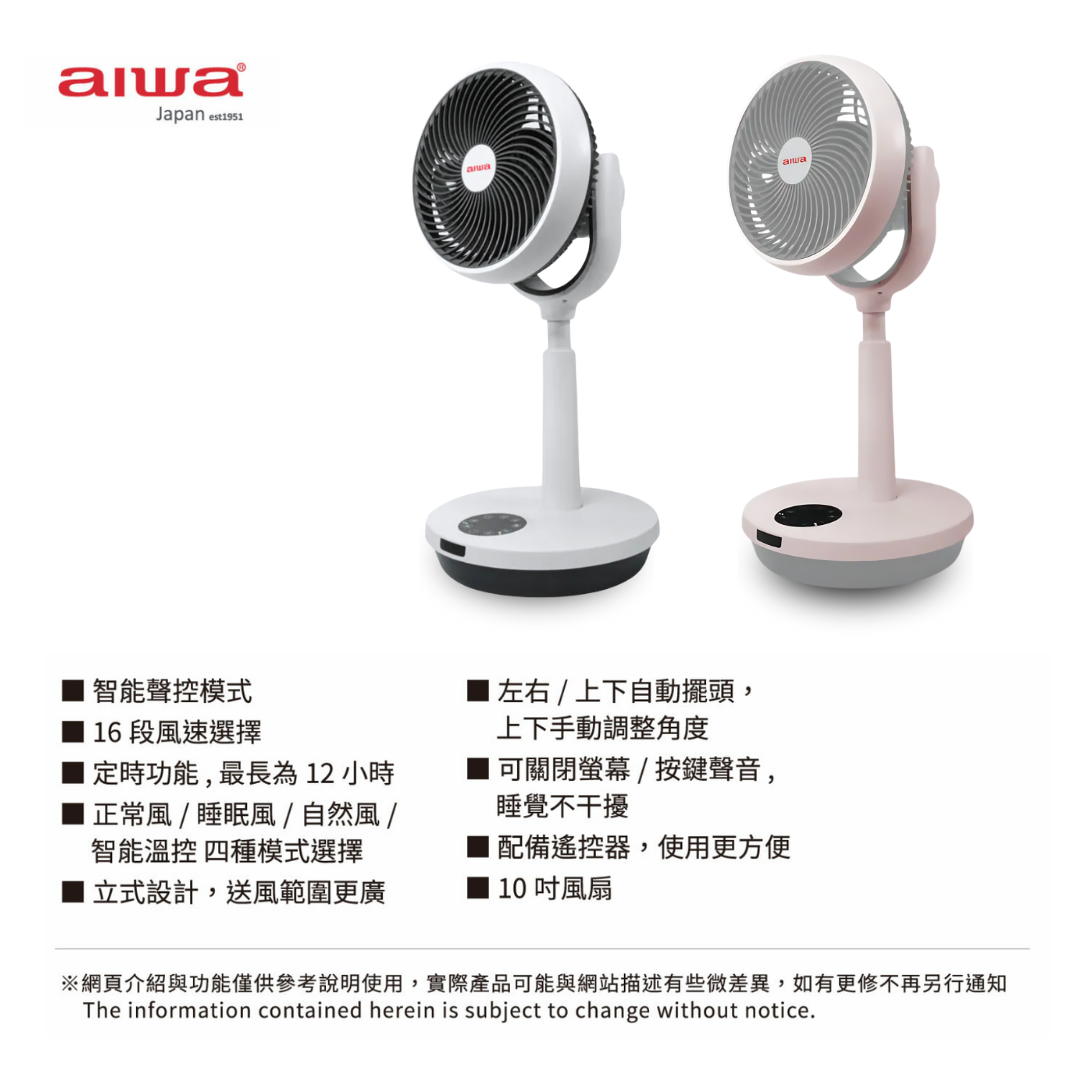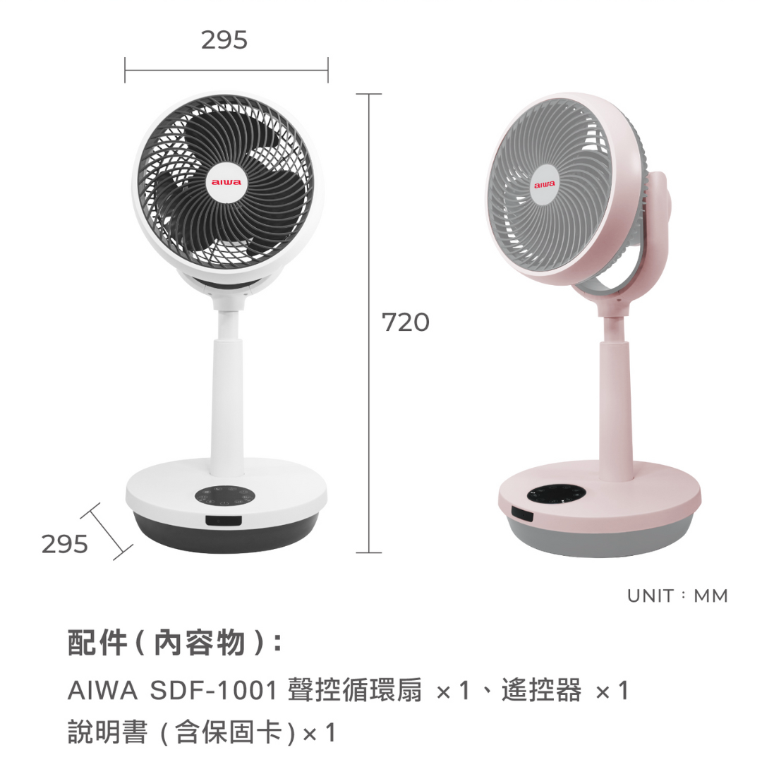 【AIWA 愛華】 聲控循環扇 SDF-1001 粉紅色 白色