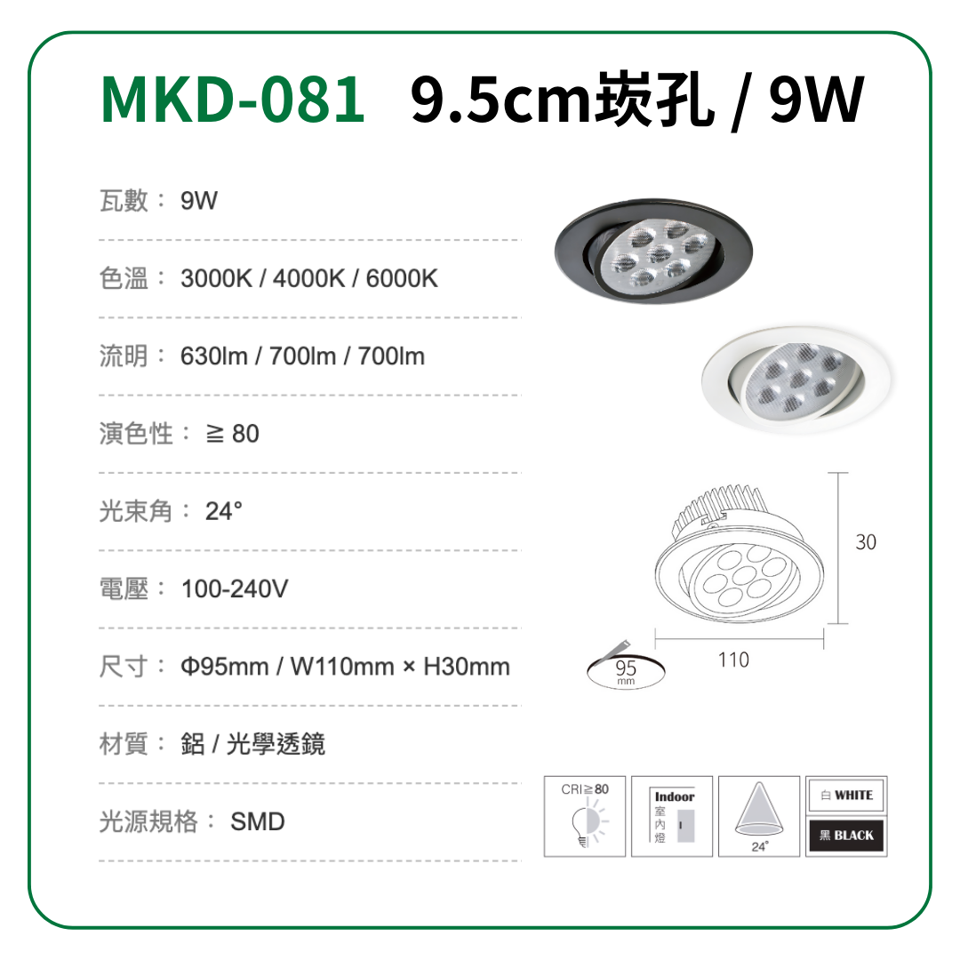 🔥 台灣現貨【Kao's 高氏】 MANGO 全新改款 LED 9W 9.5cm 崁燈 可轉角 投射崁燈