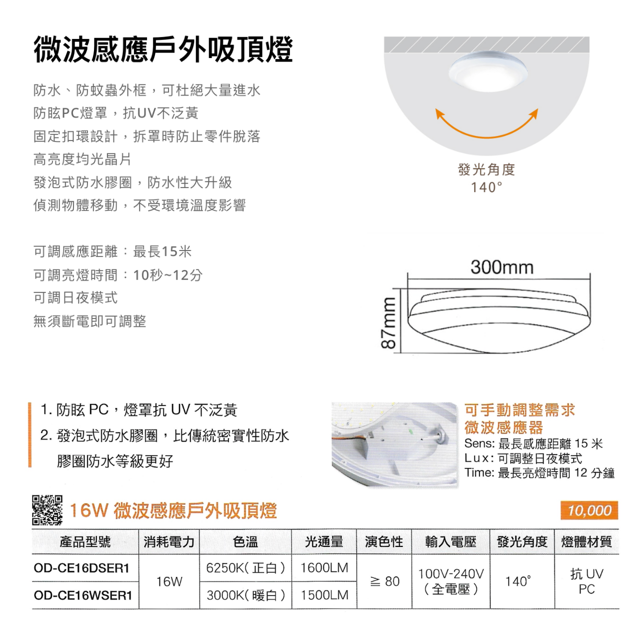 🔥 現貨免運 LED 微波 感應 戶外 防水 吸頂燈 16W OD-CE16DSER1 白光 黃光 IP66 防水