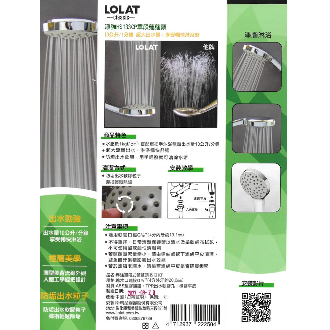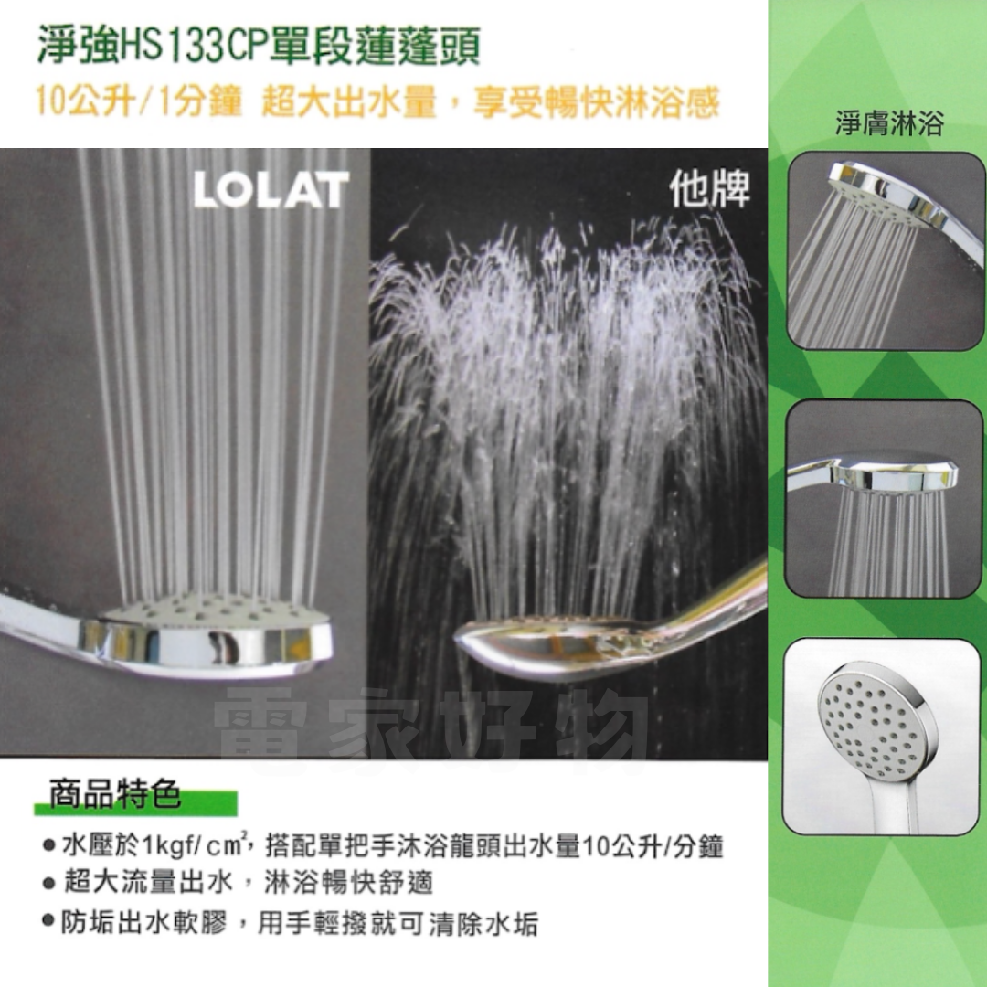 🔥 現貨免運【LOLAT 羅力】淨強單段蓮蓬頭 HS133CP + 【聖岡科技】 增壓大流量淋浴軟管 WS-13