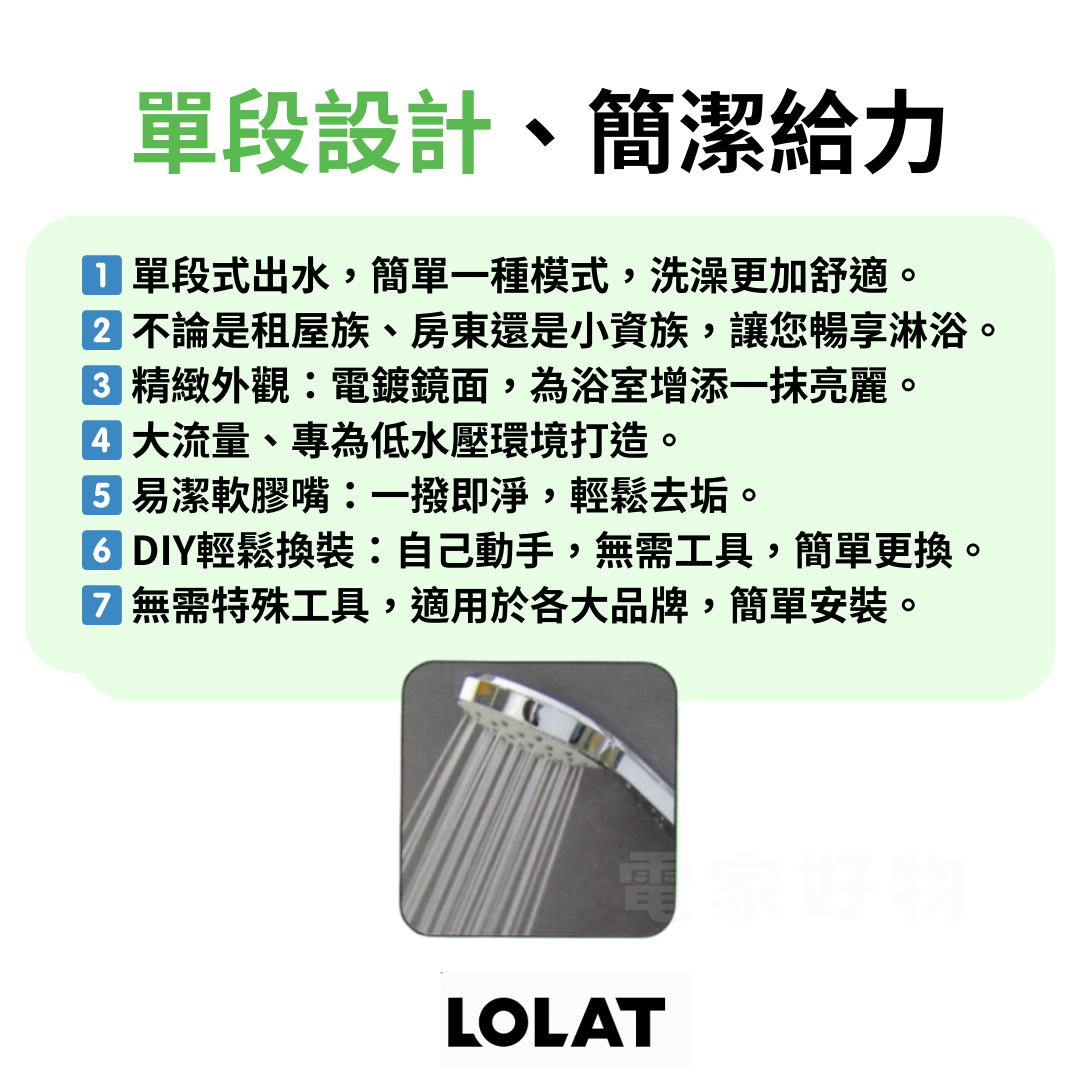 但自己家總喜歡Lolat 這款單段蓮蓬頭、