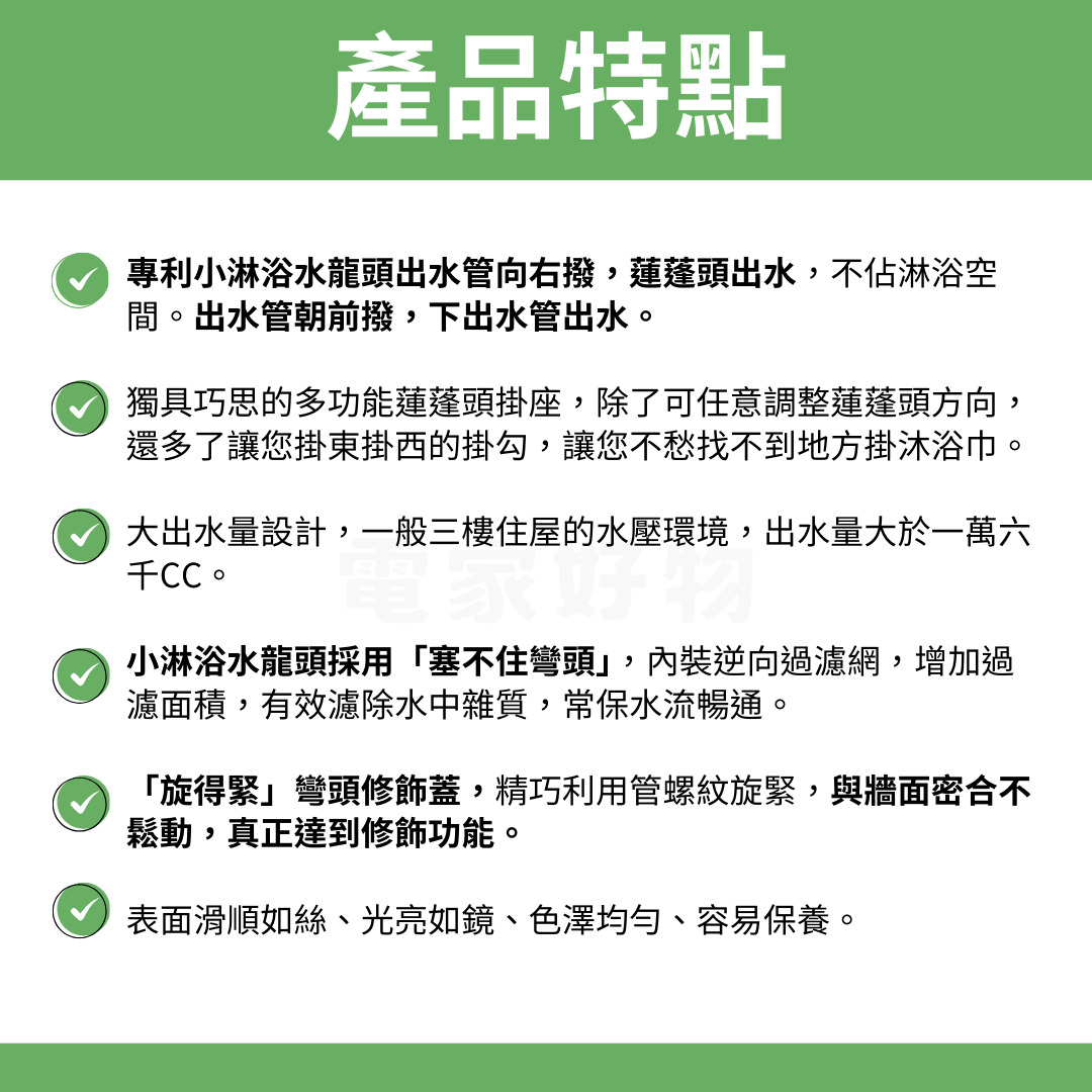🔶 蓮蓬頭兩用掛座,可隨意調整蓮蓬頭角度,掛勾設計,可吊掛沐浴用品。