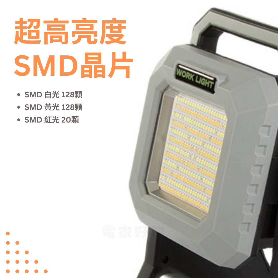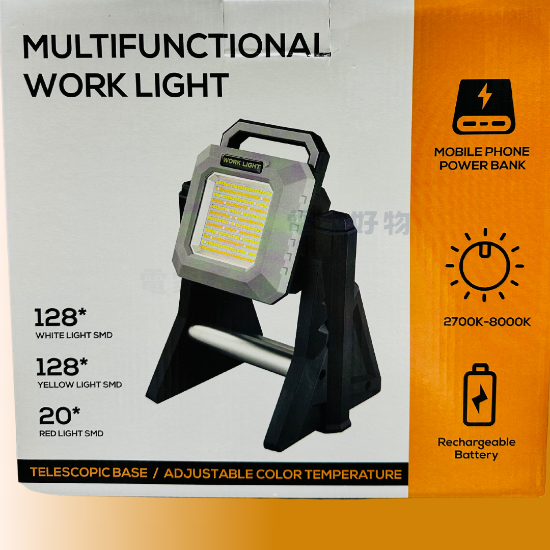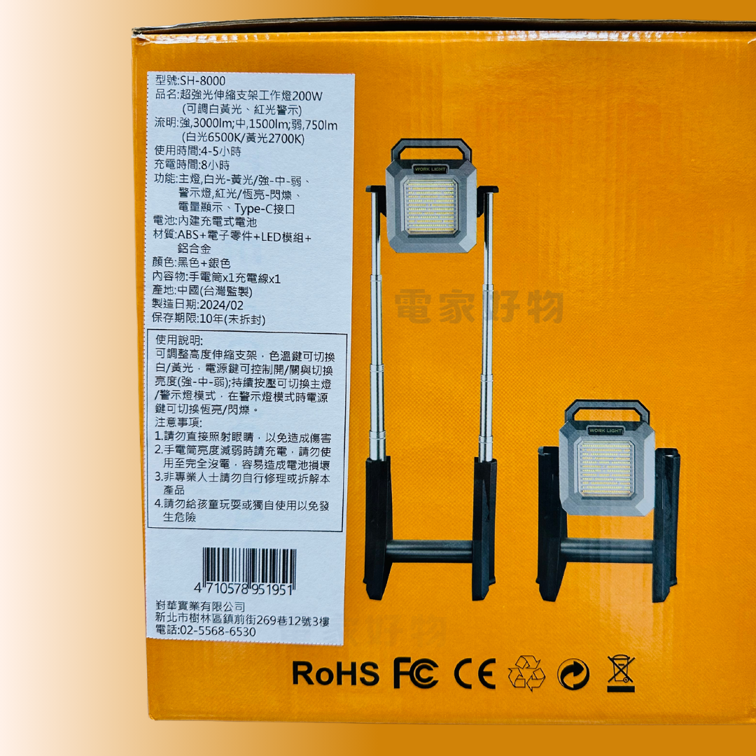 【SH-8000 200W多功能伸縮支架工作燈】白光、黃光及紅光警示,附Type-C充電線