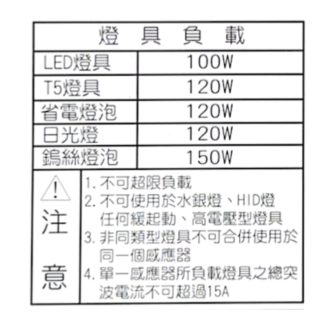 負 載:LED約100W