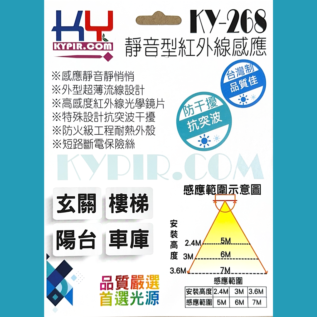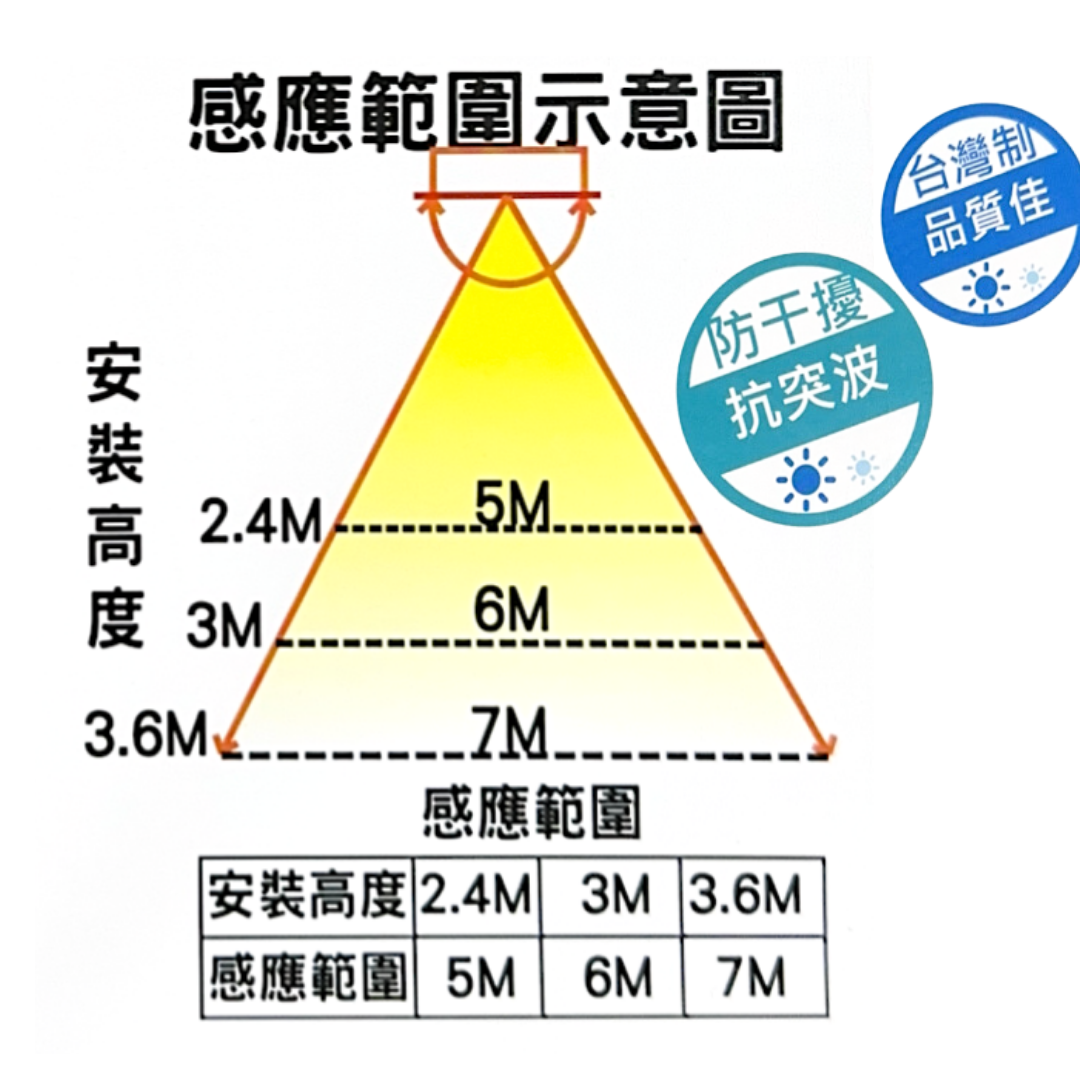 • 適用於:樓梯間、陽台、樓梯、車庫出口等場所